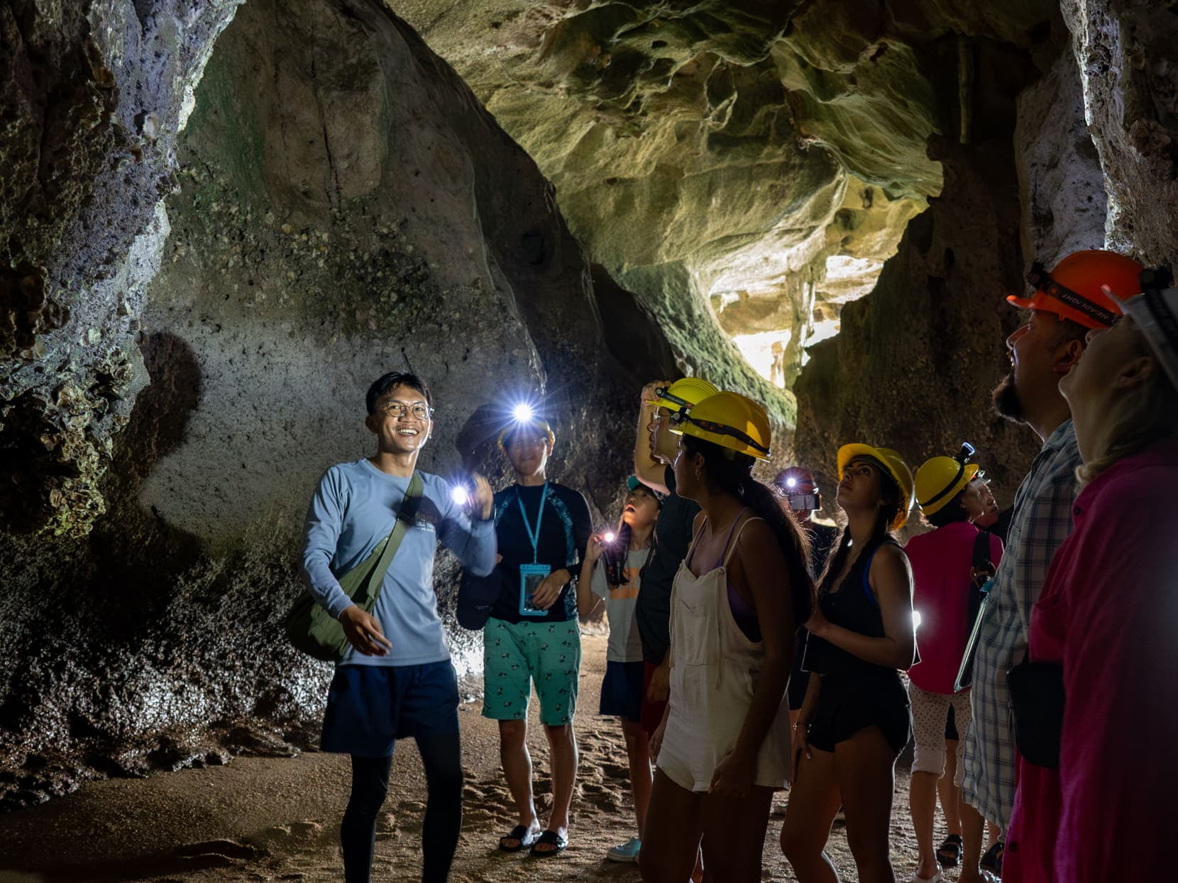 Local guides paddle the canoes through cave entrances, adjusting the route based on the tide. Some passages are low and may require guests to lean back slightly as the canoe glides through. Moving from narrow, darker tunnels into open chambers is one of the most memorable parts of the experience.