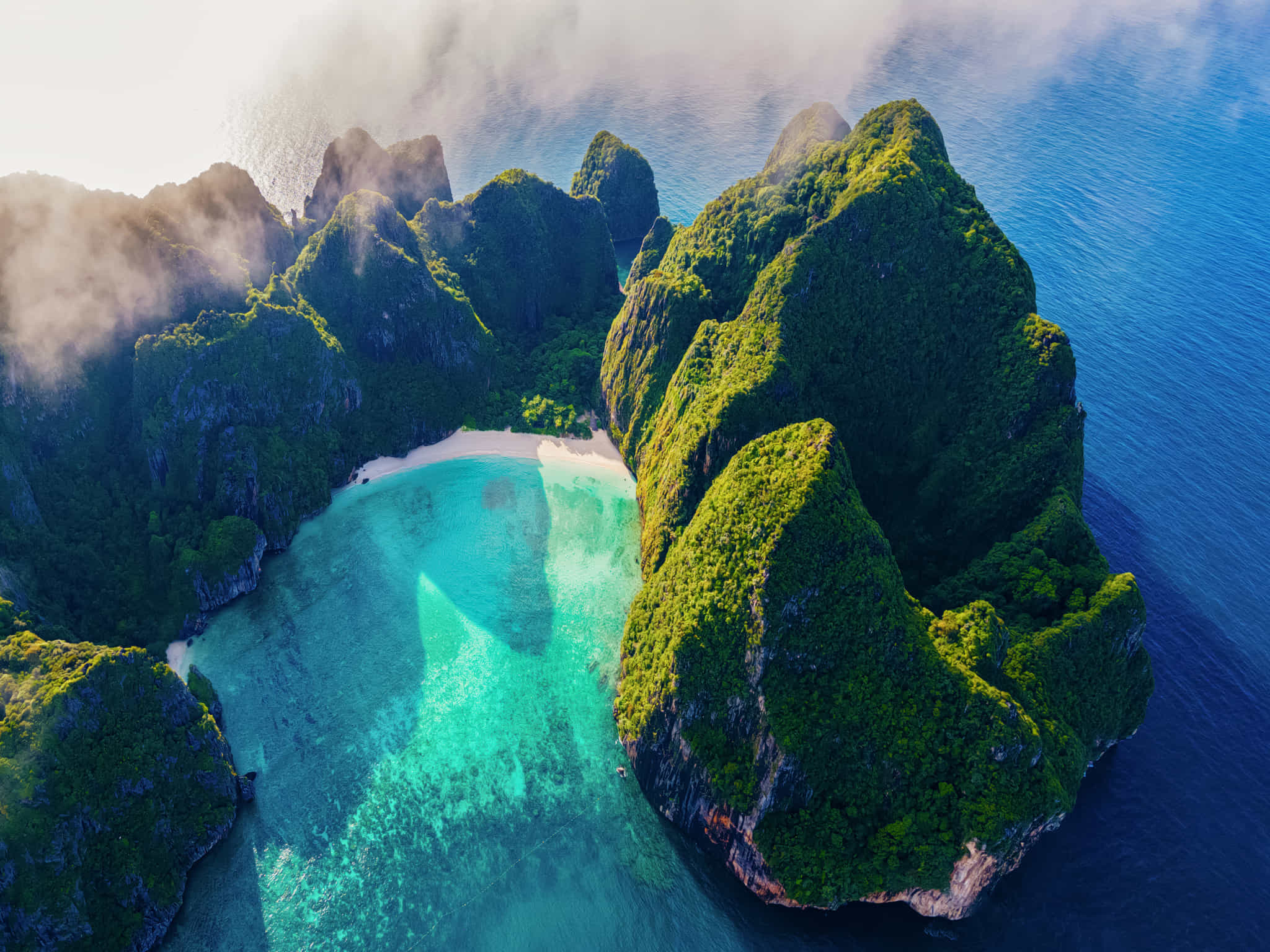 The Phi Phi Islands combine towering cliffs with white, sandy beaches and crystal clear water. While it takes a little time to journey to the Phi Phi Islands, the ease in traveling from incredible location to incredible location once you arrive is a prime reason for its popularity. In a single day you can tick a lot of boxes, from swimming in sheltered lagoons, snorkeling over coral reefs, and getting up close and personal to eye-opening limestone cliffs. Everything in the Phi Phi Islands feels intimately close and connected. Short trips between each incredible bay means very little transit time and results in more time to relax and indulge in the experience. The only locally populated island, Phi Phi Don, provides an authentic village vibe, whilst the smaller islands provide a calmer, quieter, more natural ambience. The Phi Phi Islands have also experienced a tremendous shift in sustainability in the past 20 years since the unfortunate events of the 2004 Boxing Day tsunami. Phi Phi was hit hard during this catastrophic event and has since been rebuilt with greater efforts made to ensure the safety of its residents and guests, not to mention placing a greater emphasis on sustainable tourism. Placing your trust in responsible boat tour operators is the primary way that visitors can help the local Thai Government to keep the Phi Phi Islands as beautiful as it currently is for future generations to enjoy for many years to come.